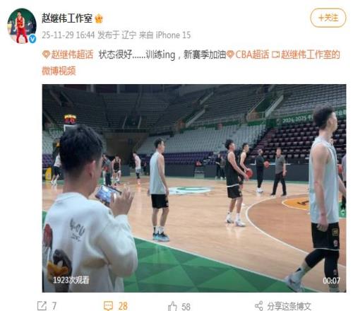 赵继伟工作室官方晒出赵继伟的训练视频,根据媒体人白晓篮报道,辽宁男篮并未给赵继伟报名12月2日的首次体测补测。如此一来,赵继伟将无缘CBA俱乐部杯的小组赛,也将无缘CBA新赛季至少前5轮比赛。