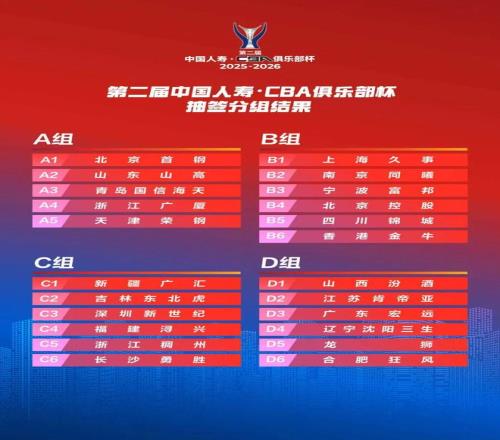 第二届中国人寿CBA俱乐部杯抽签分组结果出炉