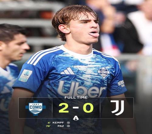 比赛一开打,主场作战的科莫很快进入状态,仅仅开打4分钟,就闪电破门得分,主队开出战术角球,尼科·帕斯主罚短传,随后一脚精准传球送入禁区,埋伏在后点的肯普夫高高跃起头槌破门,科莫1-0尤文图斯,取得了梦幻般开局,法布雷加斯在场边紧握拳头,这一刻,他的战术布置得到了完美执行,并收获了结果。上半场结束,尤文的中场基本被科莫所压制,完全打不出像样的进攻。