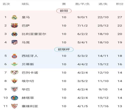 上一篇: 西甲第10轮后积分榜:皇马领先巴萨5分黄潜第3马竞第4