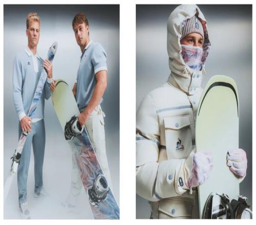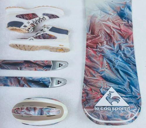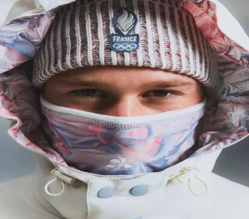 在2024年巴黎奥运会上诠释三色旗后,法国运动品牌乐卡克决定采用冷峻的色彩组合来打造冬奥会氛围。乐卡克将三色颜料涂抹在褶皱并凸起的织物上,用喷绘呈现出地形图般的视觉效果,再用图案将每件单品联系起来。