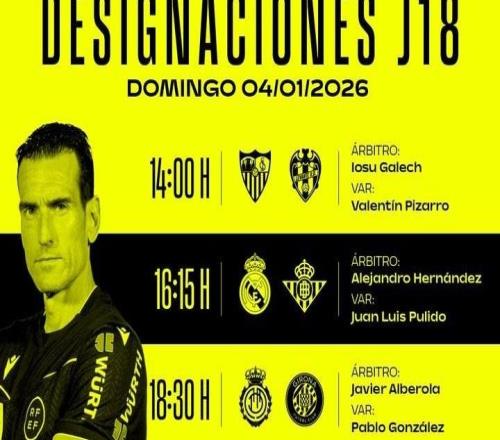西甲第18轮第3比赛日裁判:平方哥执法皇马vs贝蒂斯